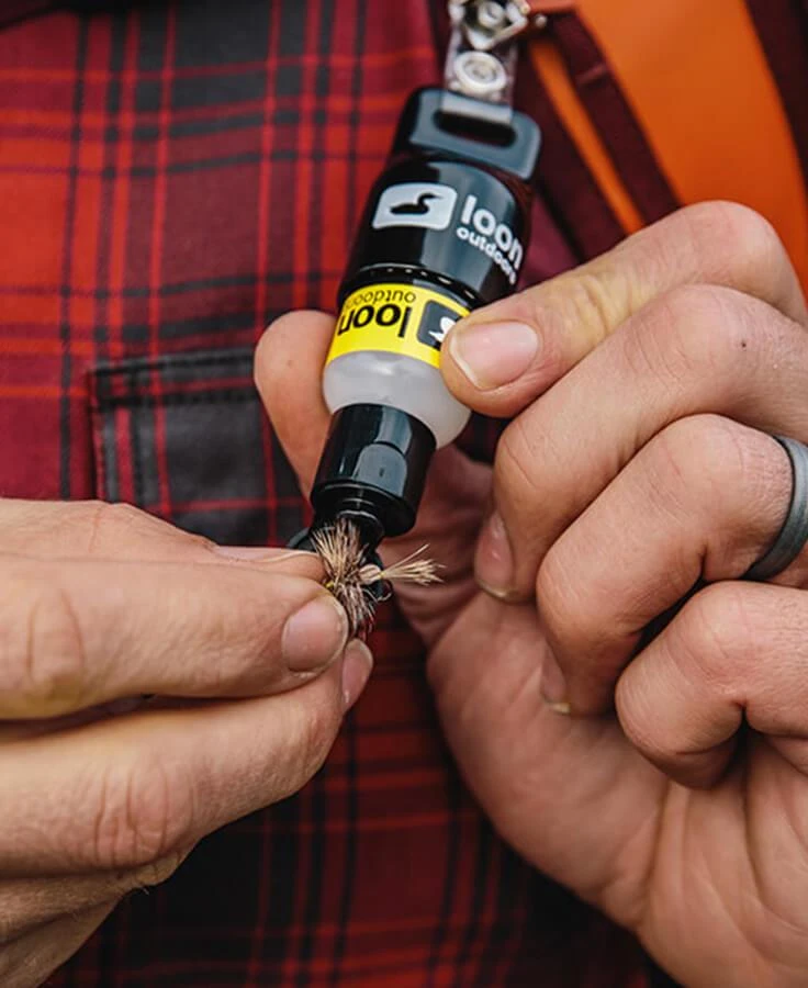 The Loon Outdoors Bottoms Up Caddy is made to hold 1/2oz floatant bottles in the easiest way possible. It’s made with a rubber suction cup that conveniently keeps the floatants with their bottoms up, ready to use any time. The clip also attaches to your vest, so your floatant is always close at hand. It’s compatible with Loon Outdoors products that come in 1/2oz bottles.