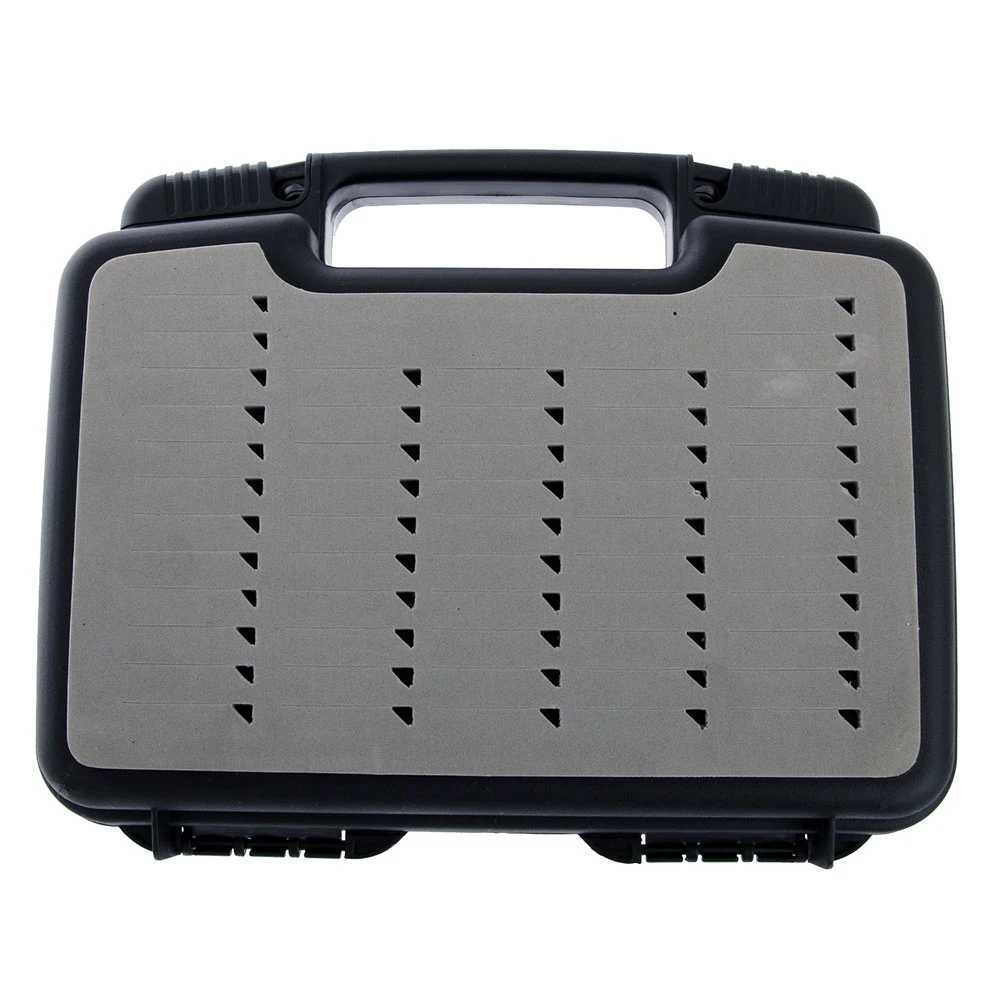 - Seven rows hold up to 109 flies in slotted tri-foam per